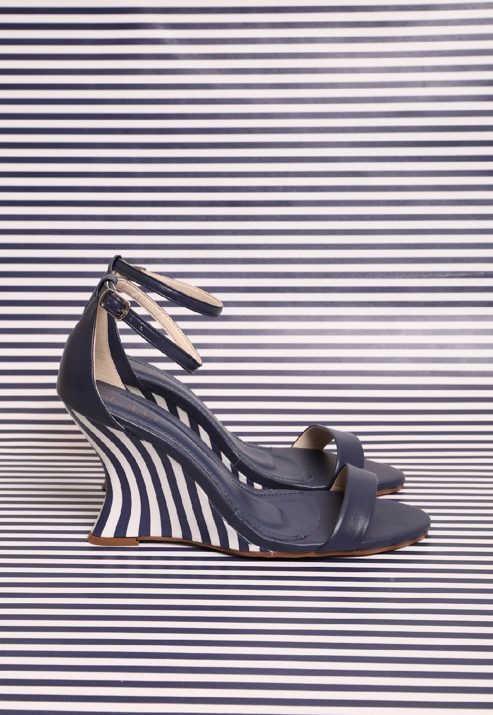 Anabela em couro azul marinho, com