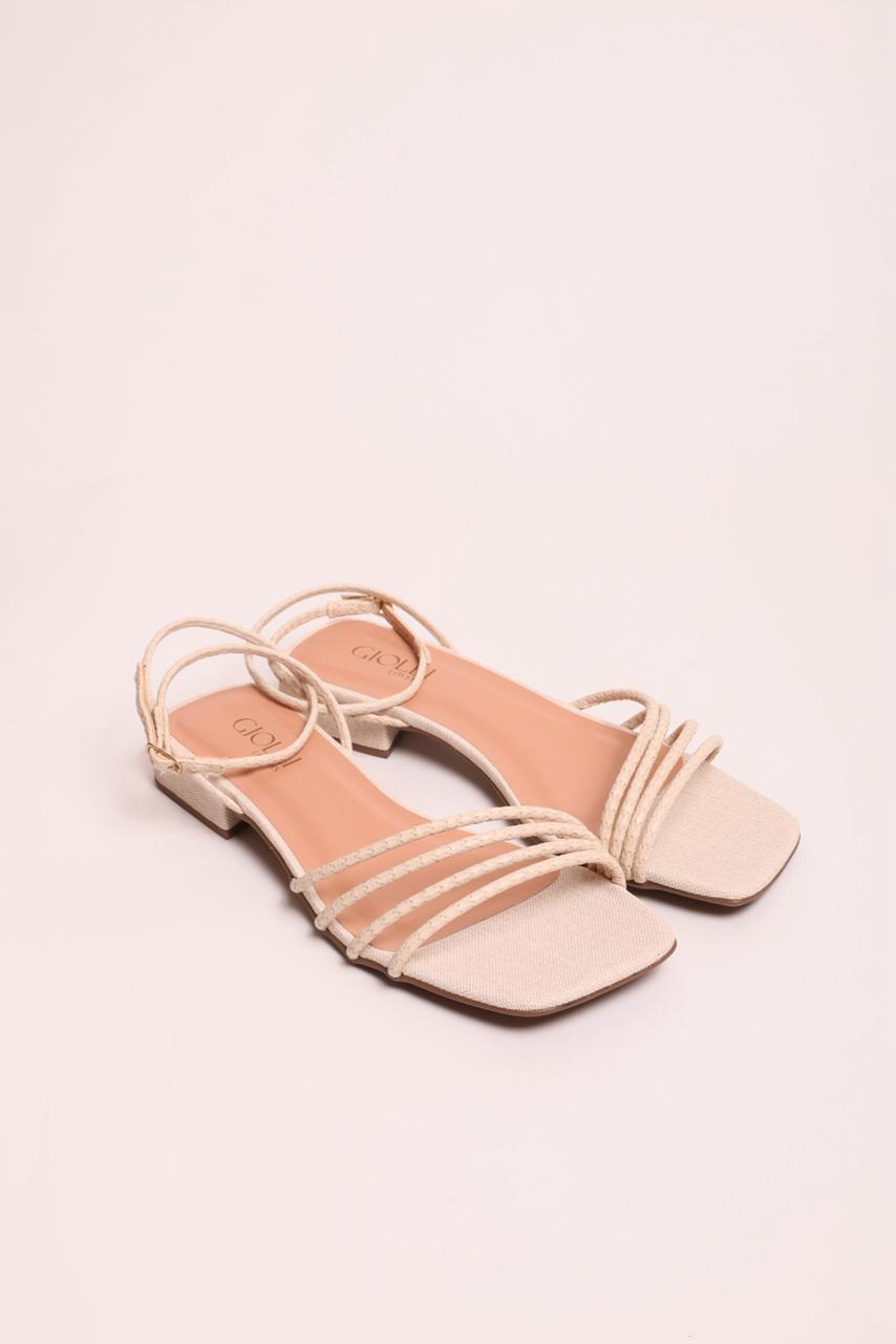 Sandália em material tecnológico e detalhes em linho off white.